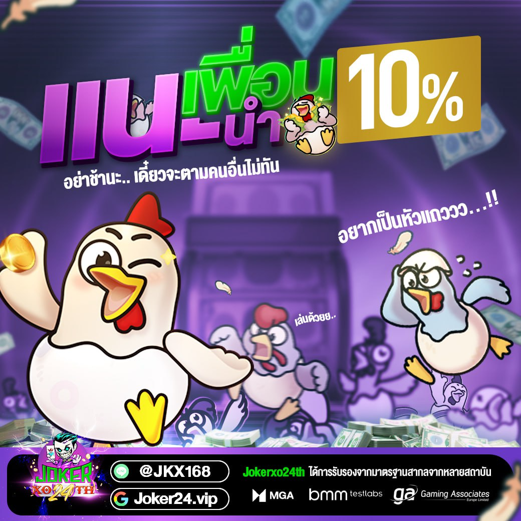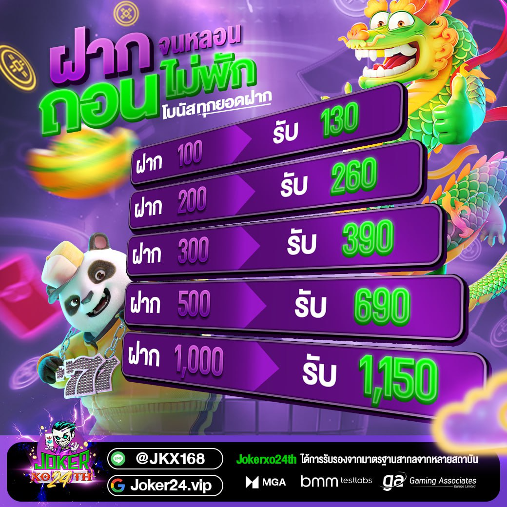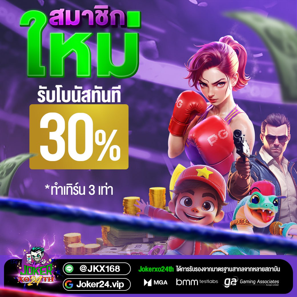 สำหรับสายปั่นสล็อตที่กำลังมองหาโปรโมชั่นสุดคุ้ม วันนี้ผมจะมาแนะนำโบนัสพิเศษจาก Jokerxo24th ที่จัดเต็มให้สมาชิกทุกคนได้รับประสบการณ์การเดิมพันที่คุ้มค่าที่สุด เริ่มต้นด้วยโปรโมชั่นต้อนรับสมาชิกใหม่ที่ให้โบนัส 100% สูงสุดถึง 1,000 บาท เพียงสมัครสมาชิกและทำการฝากเงินครั้งแรก คุณก็จะได้รับเครดิตเพิ่มทันทีเพื่อต่อยอดการเล่นให้สนุกยิ่งขึ้น